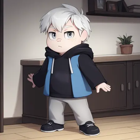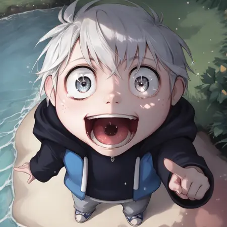 ネガティブプロンプト: score_5_up, score_4_up, 単純な背景、ポーズ、hands_up、低品質、最悪の品質、ぼやけ、no_hands、woman、female、1girl、胸筋、筋肉質、bara、乳房、a-pose、t-pose、hands_in_pockets、汚れた服、worst_hands、巨大、オーバーサイズ、フュージョン、shota、子供、年齢ダウン、