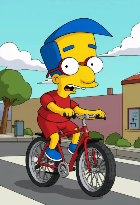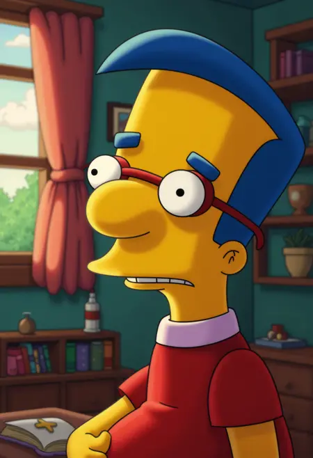 并不完美,它经常与其他《辛普森一家》角色混淆,但仍然比普通的Flux更好(没有LoRA时,它会生成一个蓝头发的巴特)。