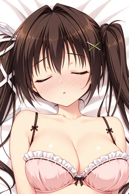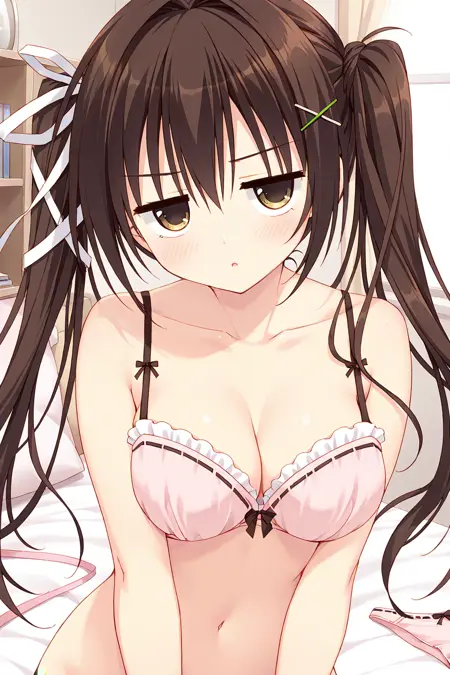 twintails,braid,hairclip,hair ornament,x hair ornament,ribbon,hair ribbon,white ribbon,直发(Straight hair)
