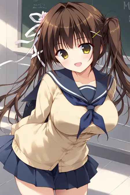 ですが、checkpoint の表情だと顔が変わってすごく気になりましたので、表情を追加で学習したバージョン (v.1.1) も公開します。これまでの衣装・髪型はそのまま対応していますので、よりらしい表情の出力をお試しください。