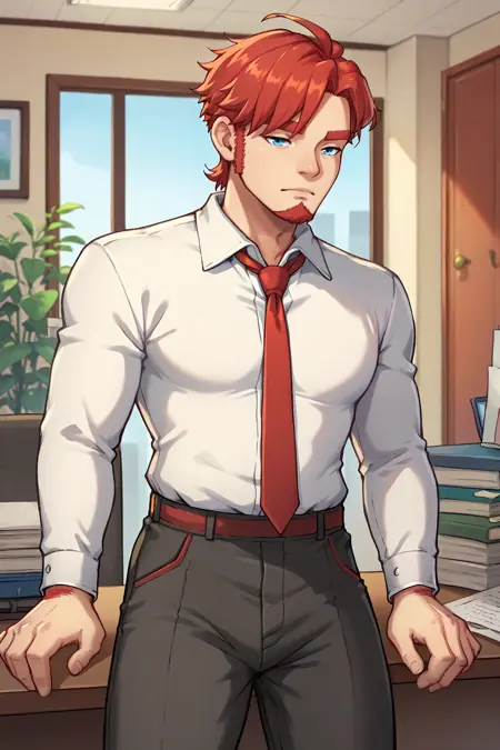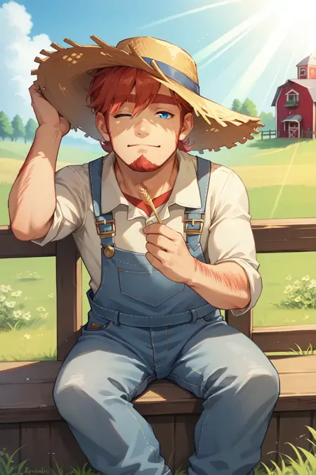 主提示词:NSArloPortia,红发,蓝眼,山羊胡