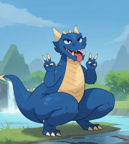 "dr4g4m0nzd4x, dragon, scalie, horns, fangs, sharp teeth, claws, blue scales, two tone body"