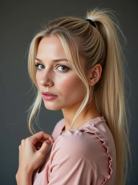 그녀는 금발 머리로 훈련되었습니다. 별도로 명시되지 않으면, 그녀의 머리색은 때로는 금발, 때로는 갈색이 될 수 있습니다.