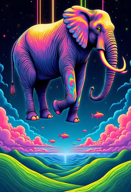 이 모델은 비교적 복잡한 프롬프트를 받아들여 밝은 색상, 두꺼운 선, 그리고 무작위적인 광란의 스타일을 추가합니다. 프롬프트 없이도 작동하지만, 키워드를 추가하면 효과가 더 강해집니다. 강도 1에서 잘 작동하며, 강도를 높일수록 더 격렬해집니다. 프롬프트에 다른 요소를 추가하면 더욱 광란적인 결과를 얻을 수 있습니다. 이 모델은 동물과 풍경 위주로 학습되었고, 인물은 거의 포함되지 않았으므로 인물 생성 결과는 다양할 수 있습니다. 무서운, 기쁜, 기묘한... 단조로운 것을 제외한 거의 모든 것을 잘 처리합니다.