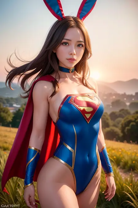 一般来说,若你想生成经典的超女造型,只需使用关键词 "wearing supergirl_cosplay_outfit",必要时加入权重即可。