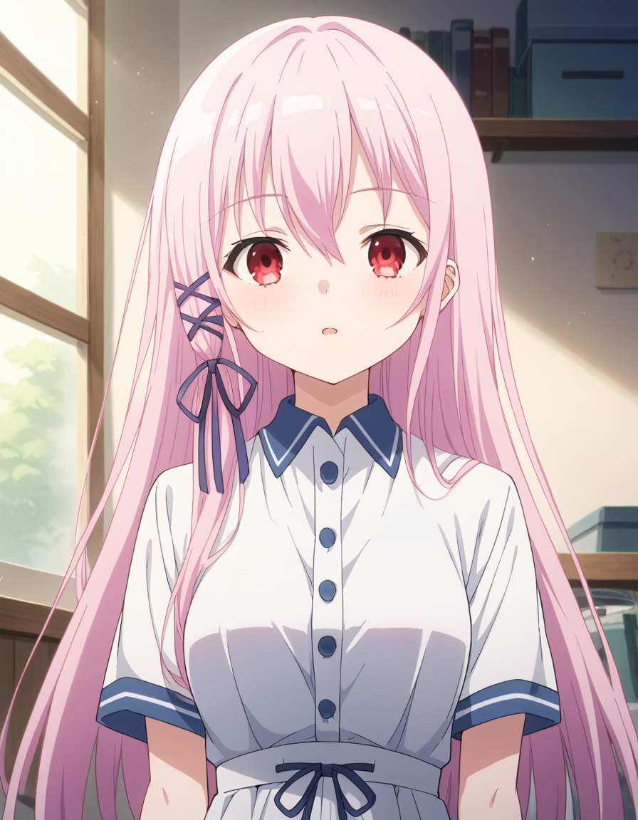 (kisara,pink_hair,red_eyes,very_long_hair,hair_ribbon,:1.0),(white_sundress,:1.0),