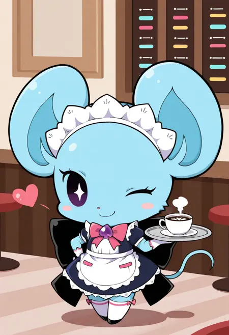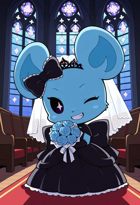 Issues: Debi wears bloomers and a black ribbon on her back, I was unable to reproduce the ribbon, If I'm able to find more images I could probably and in the case of the bloomers the AI tries to generate gothic dresses or something like that and they also had a spade symbol that refuses to generate (I'm going to upload a few images of Debi wearing bloomers but I'm pretty sure Civit will delete them.)