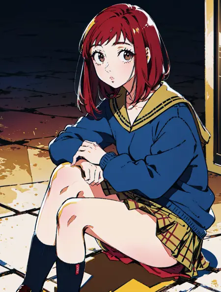 use at like 0.8 or sumthin, add serafuku + plaid skirt to get her standard outfit