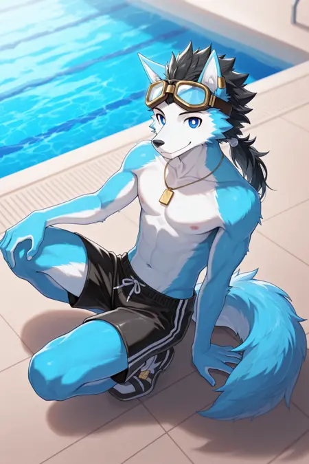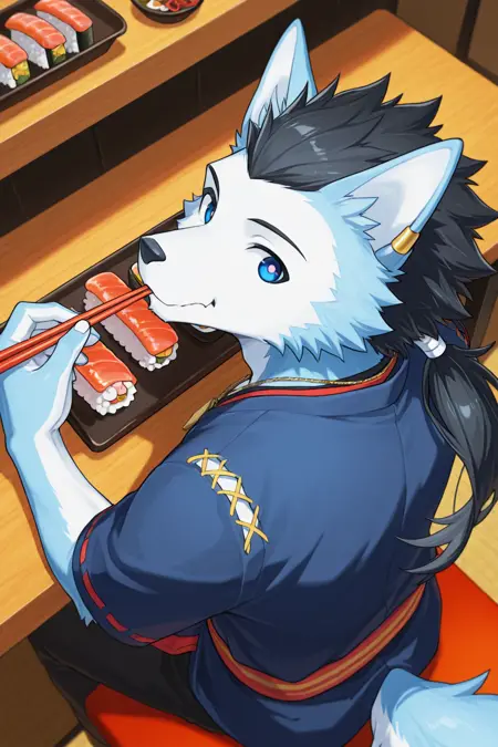 トリガータグ: shikirowen、シアンの毛並み、白い毛並み、ツートーンの毛並み、男性、アンスロ、フューリー男性、フューリー、青い瞳、白い眼球、黒い髪、動物の耳、ポニーテール、オオカミ少年、オオカミの尾、長い髪、オオカミの耳、動物の鼻、黒い鼻