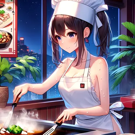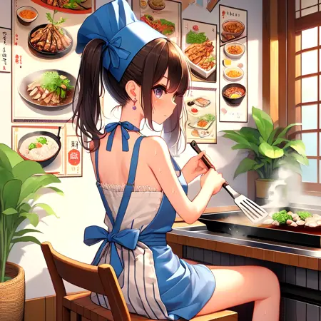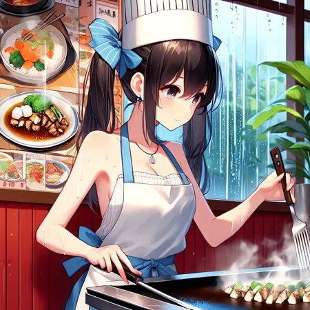 참고: 요리사 모자와 주걱이 과도하게 생성될 수 있습니다. 이 요소들이 싫다면, (SD 1.5)에서 음성 프롬프트에 "(((chef hat)))"와 "((spatula))"를 추가하세요.