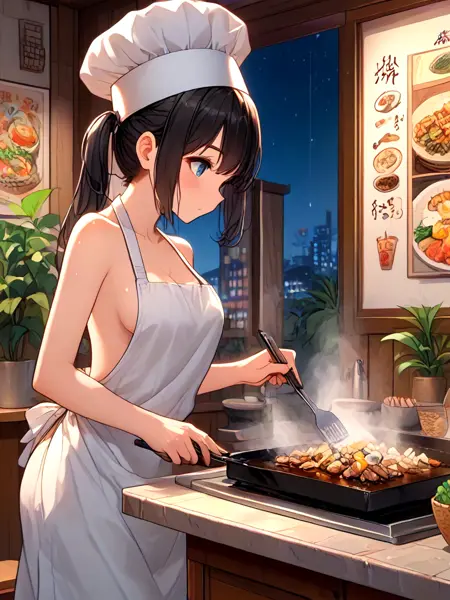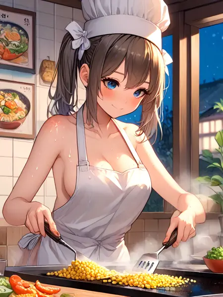注意:厨师帽和锅铲可能会过度生长。如果不喜欢,请在负面提示中添加 "(((chef hat)))" 和 "((spatula))"。(SD 1.5)