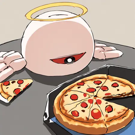 02kirby, 1other, solo, cyclops, red sclera, colored sclera, black eyes, white pupils, bright pupils, halo, wings, no humans