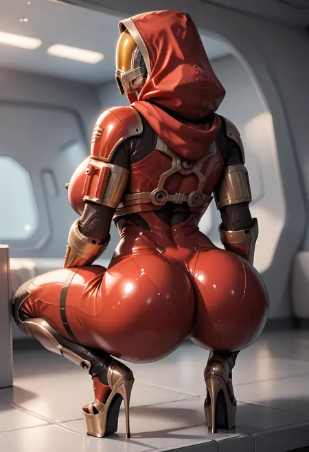 色には一貫性がない場合がありますが、アーマーやマスクに色を指定できます。例:red mask, green armor, green bodysuit — 色が正しく表示されない場合は、**(red mask)**のように色を強調してみてください。