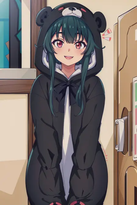首先,由乃的熊装出场时间分布并不均匀。大部分时间她都穿着黑色熊装,而白色熊装的出现则间隔很长……