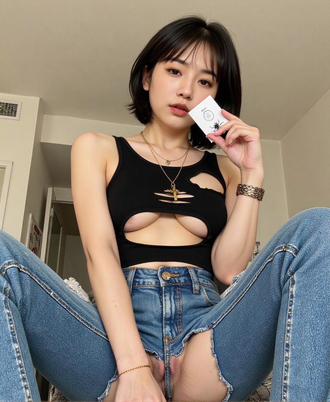 트리거 단어: "찢어진 청바지로 다리 드러내기", "찢어진 옷", "손상"