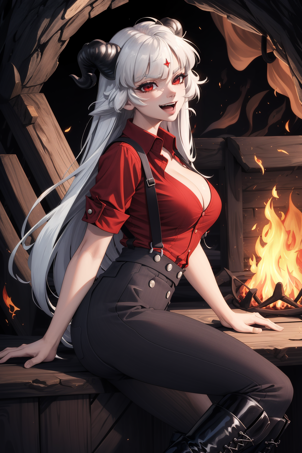 GrizzのHelltakerオリジナルキャラクター、バフォメット。NAIでトレーニング済み。テスト強度は0.8〜1.0。