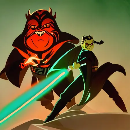 Titmouse 스튜디오에서 만든 스타 워즈: 어드벤처 갤럭시 단편 영화의 정지 화면을 기반으로 한 LoRA입니다. 지금은 잘 작동하는 것 같으니 즐겁게 사용하세요.