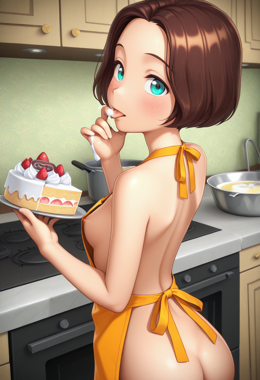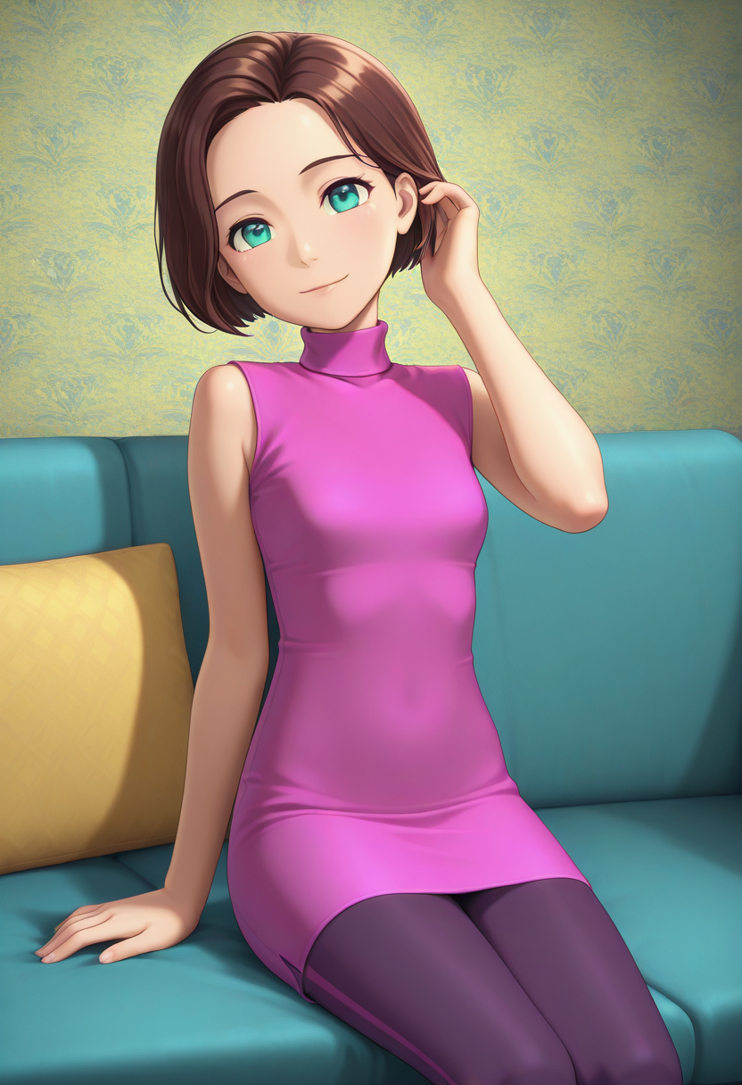 short hair, brown hair, aqua eyes,
