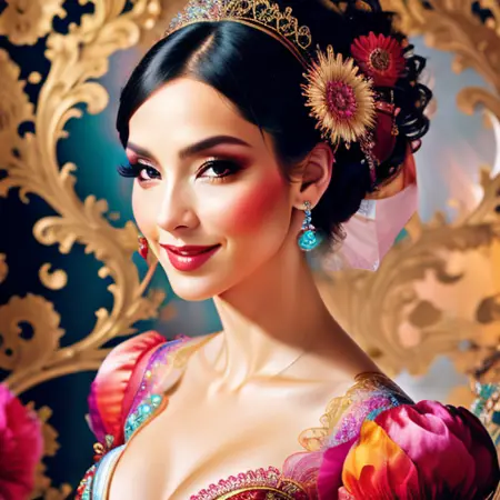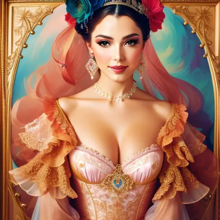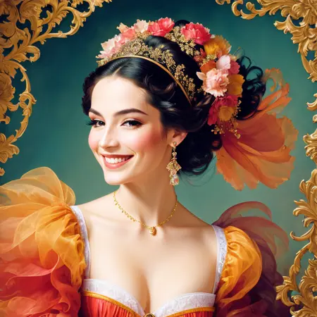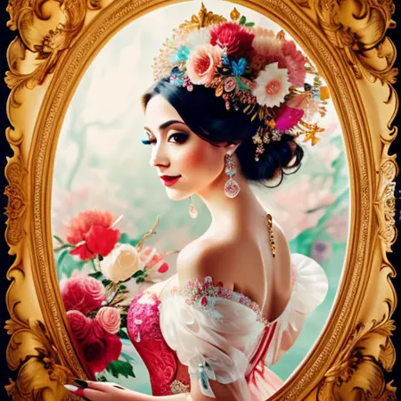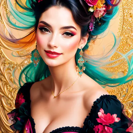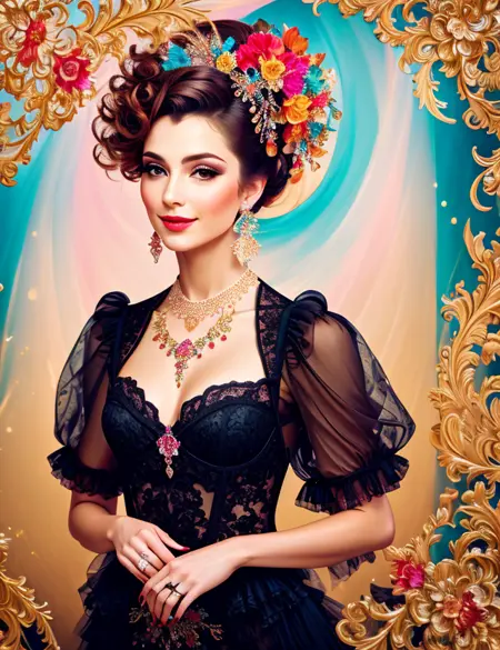 This model is based primarily on an artistic style. The style is combined with different artistic trends, such as: black ink flow, an airbrush painting, beautiful fantasy art, calligraphy, acrylic, watercolor art, Rococo.