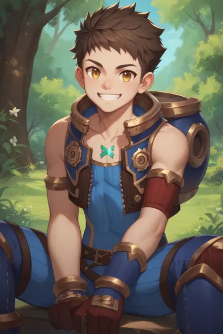 标准:蓝色连体衣,无裆裤,棕色手套,靴子