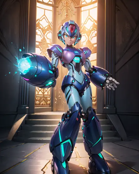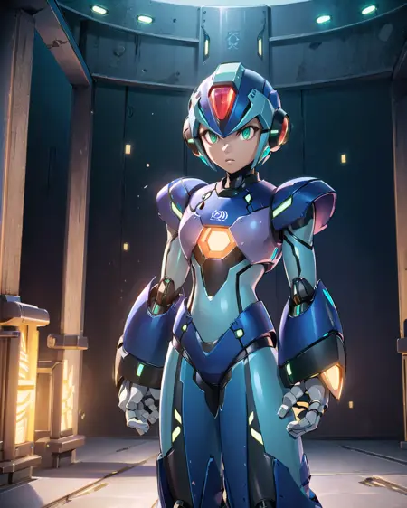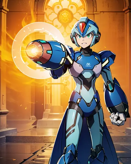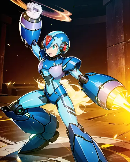 이 로봇의 이미지를 생성하려면 'x(ver.ke)', 'mega man x \(series\)', 'android', 'humanoid robot', 'reploid', 'robot joints', 'helmet', 'big feet' 등의 프롬프트(트리거 단어)를 사용할 수 있습니다. 이 로봇의 상징적인 X버스터는 최대한 'arm cannon', 'x buster'를 포함시켜 구현하려 노력했습니다. 'energy beam', 'firing'을 추가하면 발사 장면도 나오고, 'thrusters', 'rocket boots', 'hovering', 'flying' 등을 넣으면 발사기로 떠오르며 날아다니는 모습도 만들어낼 수 있습니다. 그리고 제가 개인적으로 선호하는 부분으로, 파란 아머 아래에 드러난 금속 골격(팔과 다리에 한정)을 표현하고자 'robotic reveal', 'mechanical parts', 'mechabare', 'damaged' 등의 키워드를 추가해 보았습니다... 관심 있으신 분들만 시도해 보세요!