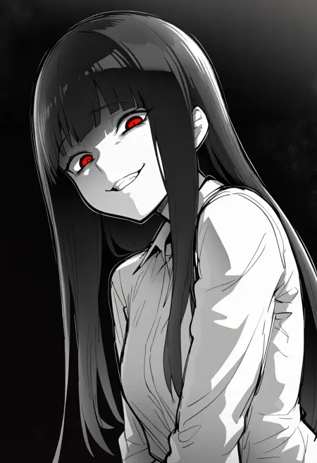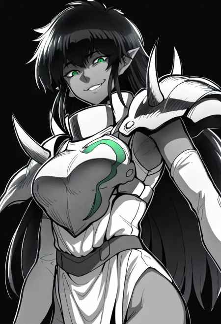 オプションのプロンプト:(glowing eyes:0.5), smile, looking at viewer, solo, sketch, black background