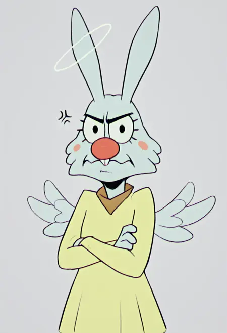 AngelMaddy,兔子,光环,门牙,黄色连衣裙,长袖,红鼻子,睫毛,翅膀,耳朵