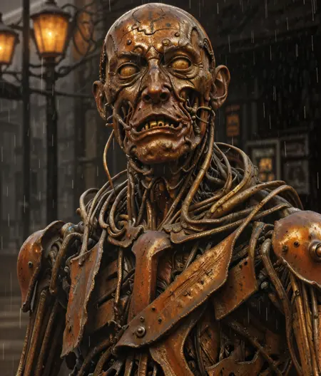 在法国解剖学家奥诺雷·弗拉戈纳尔(1732-1799)的一些阴森作品上进行训练。Lora 非常适合生成僵尸或赛博格风格的图像,同时在人脸生成上也能产生有趣的效果。