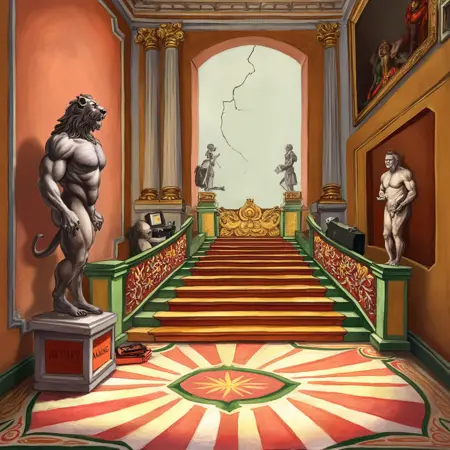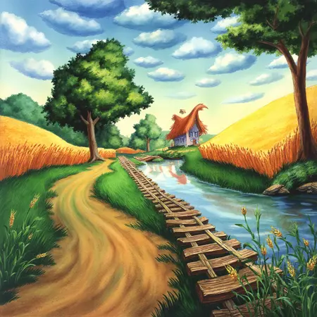 该风格基于1998年在俄罗斯发行的寻宝游戏《Petka 和 Vasily Ivanovich》中的手绘背景(Oleg Zaharov 风格)。