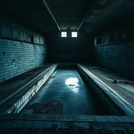 docpollparan, public pool, asylum, abandoned, empty pool, mist