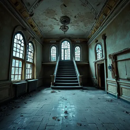 docpollparan, entrance hall, asylum, abandoned, staircase