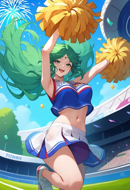 plutena, 녹색 눈, 녹색 머리카락, 갈라진 앞머리, 긴 머리, 큰 가슴