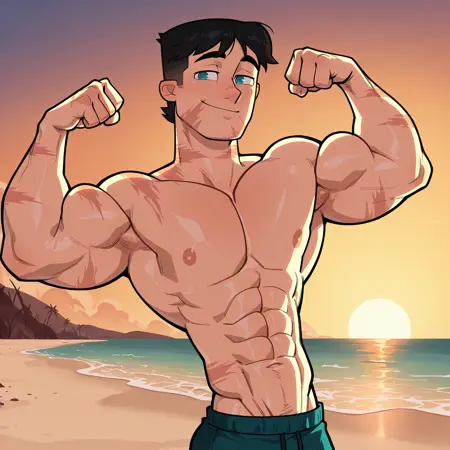 Prompts: Tom_DVC, man, black hair, green eyes, jacket, scar, scar on face, scar on body