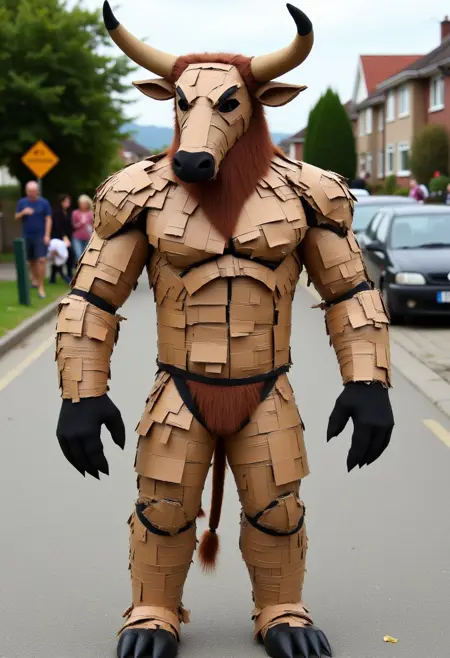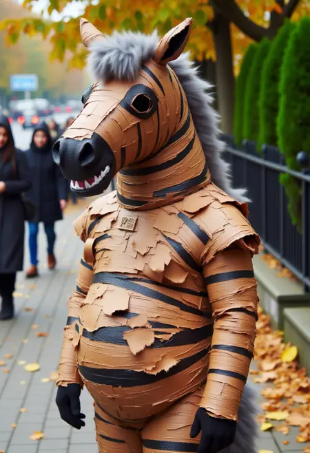 このモデルは、ハロウィンやコスプレ用のDIYスタイルの衣装を、段ボール、ダクトテープ、アルミホイルなどを使った材料で作成するように学習されています。