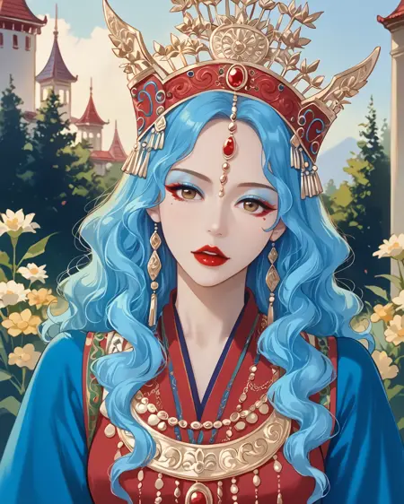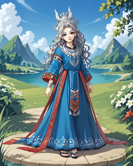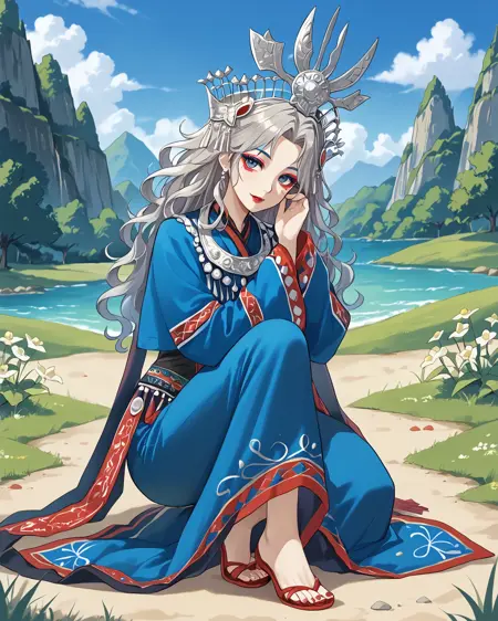 一个允许你生成苗族风格传统服饰的 LoRA。苗族是中国及周边其他国家的一个少数民族,因其华丽的银质头饰而闻名。这些头饰极为复杂,因此生成结果会接近真实作品,但未必完全准确。你也可以尝试降低 LoRA 权重,并调整提示词,创造出更具幻想风格的头饰,以精湛的工艺为灵感。