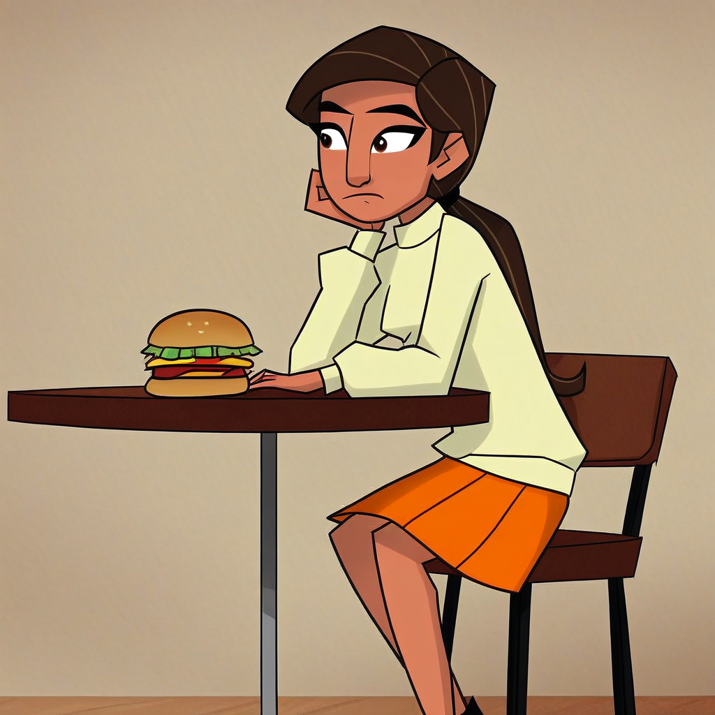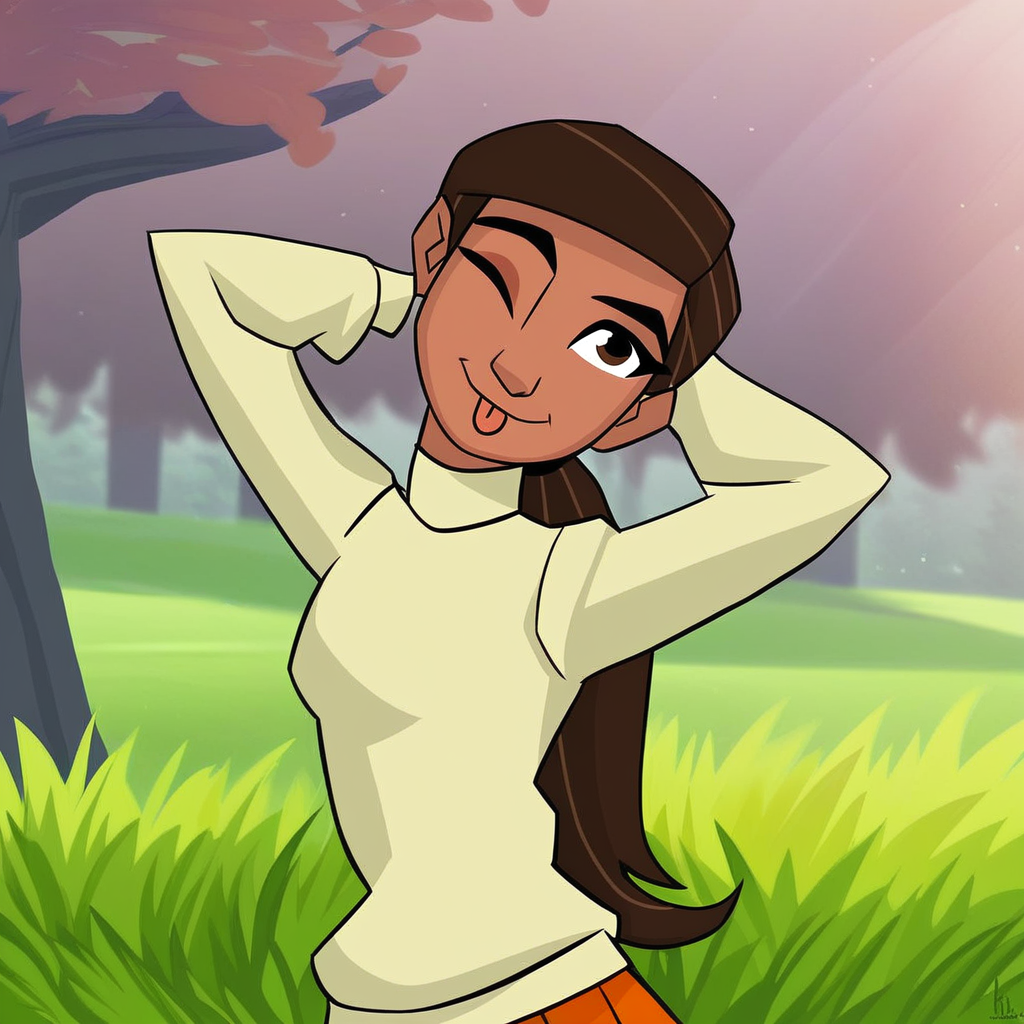 karmi_bh6, brown hair, long hair, ponytail, dark-skinned female, sweater, skirt