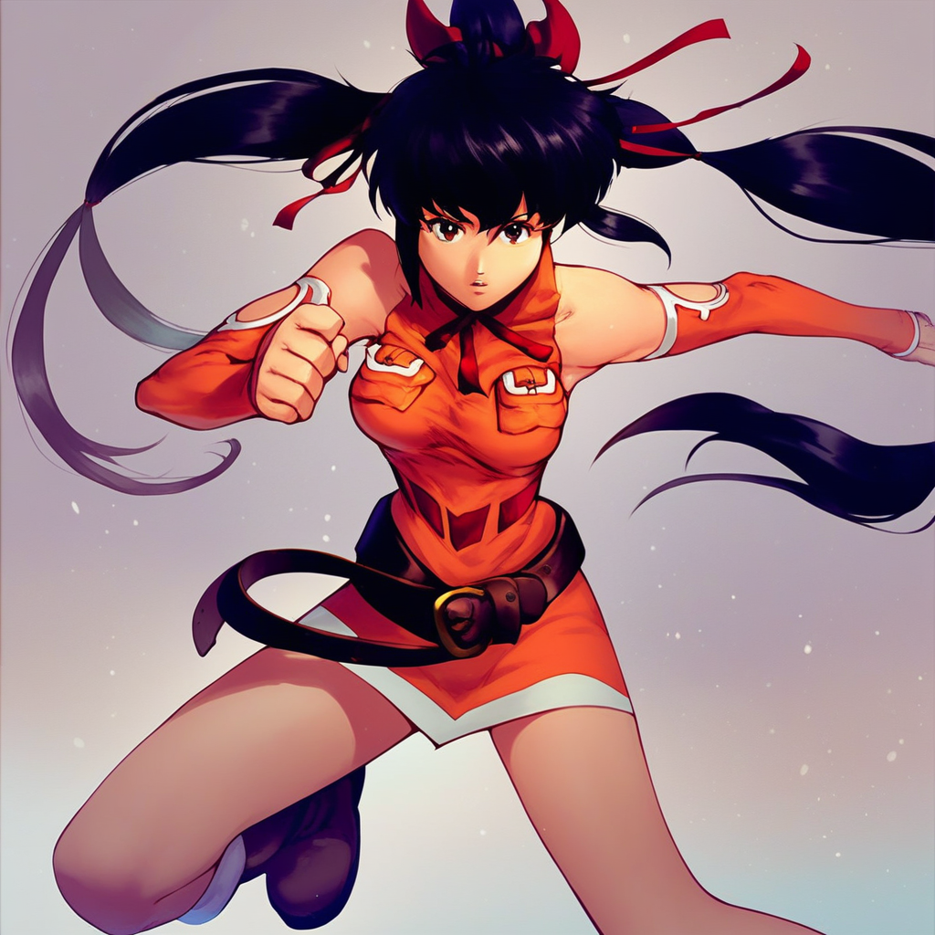 lisa_pacifist, black hair, 1girl, solo, ponytail, twintails, long hair, breasts, black hair, brown eyes, parted lips,