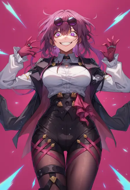 gojoendef, crazy eyes, crazy smile, looking at viewer, smile, open mouth, upper body, teeth, tongue, blood, outstretched arms, blood on face, blood on clothes,