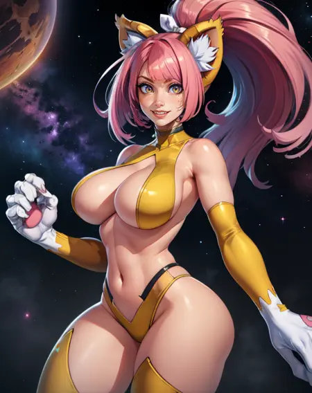 Felynn、紫の目、ピンクの髪、ポニーテール、- :3.