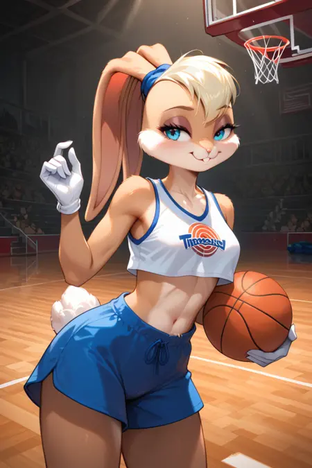 - gloves, white gloves, crop top, white top, basketball, midriff, shorts, navel, ball, white shorts