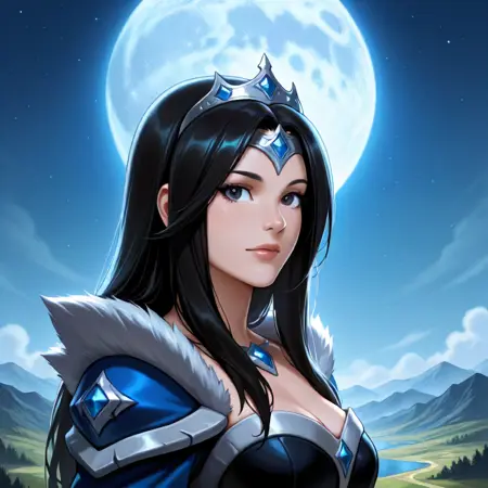 推奨ワード: 1girl, 黒髪, 美しい顔, 皇冠, 月