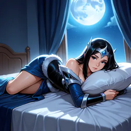 推荐关键词: 1girl, 黑发, 美丽的脸庞, 王冠, 月亮