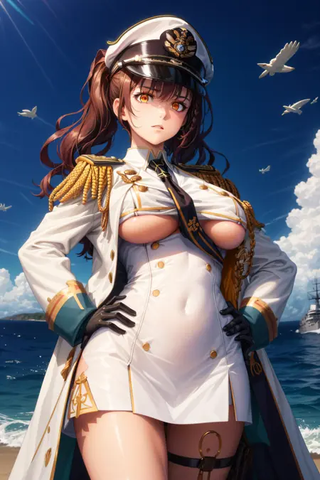 • Main Outfit - raphaeloutfit, school uniform, skirt, underboob, midriff, eyewear on head