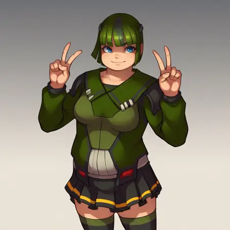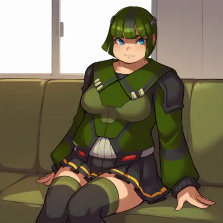 Bulkhead, 1girl, solo, green hair, short hair, bob cut, blue eyes,