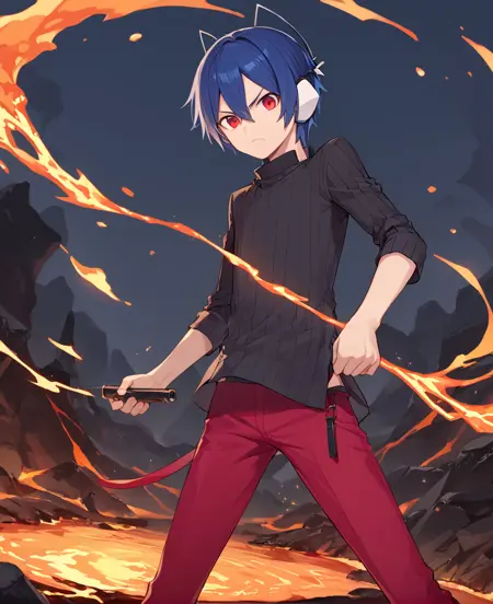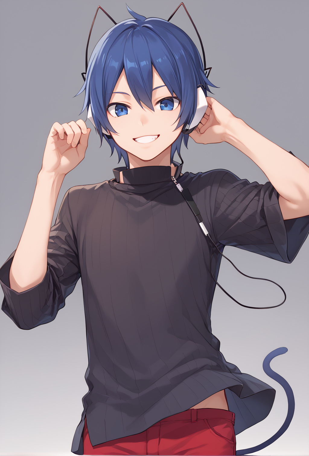 to Generate, start with those tags: protagonist \(devil survivor\), blue hair, blue eyes, cat ear headphones, short hair