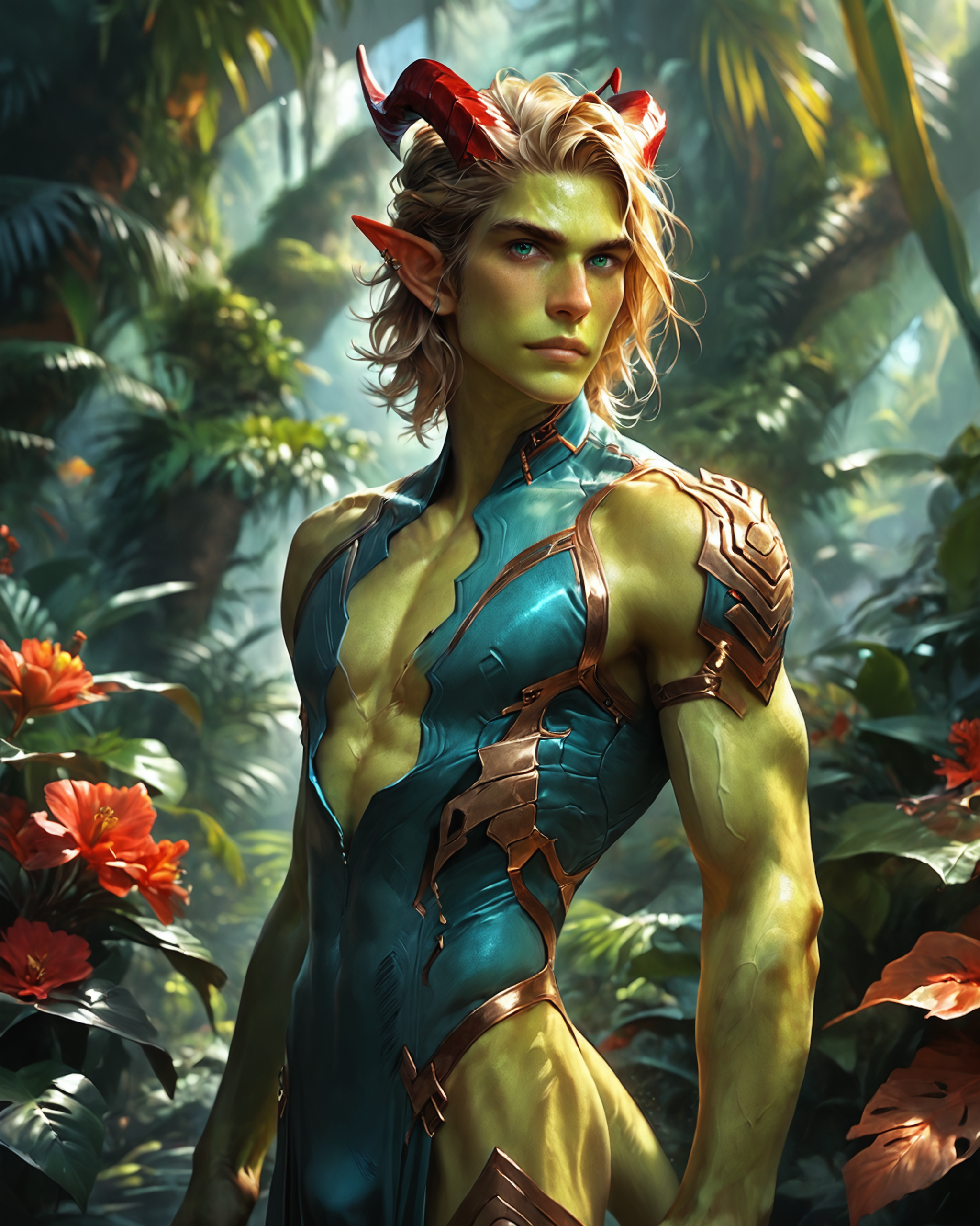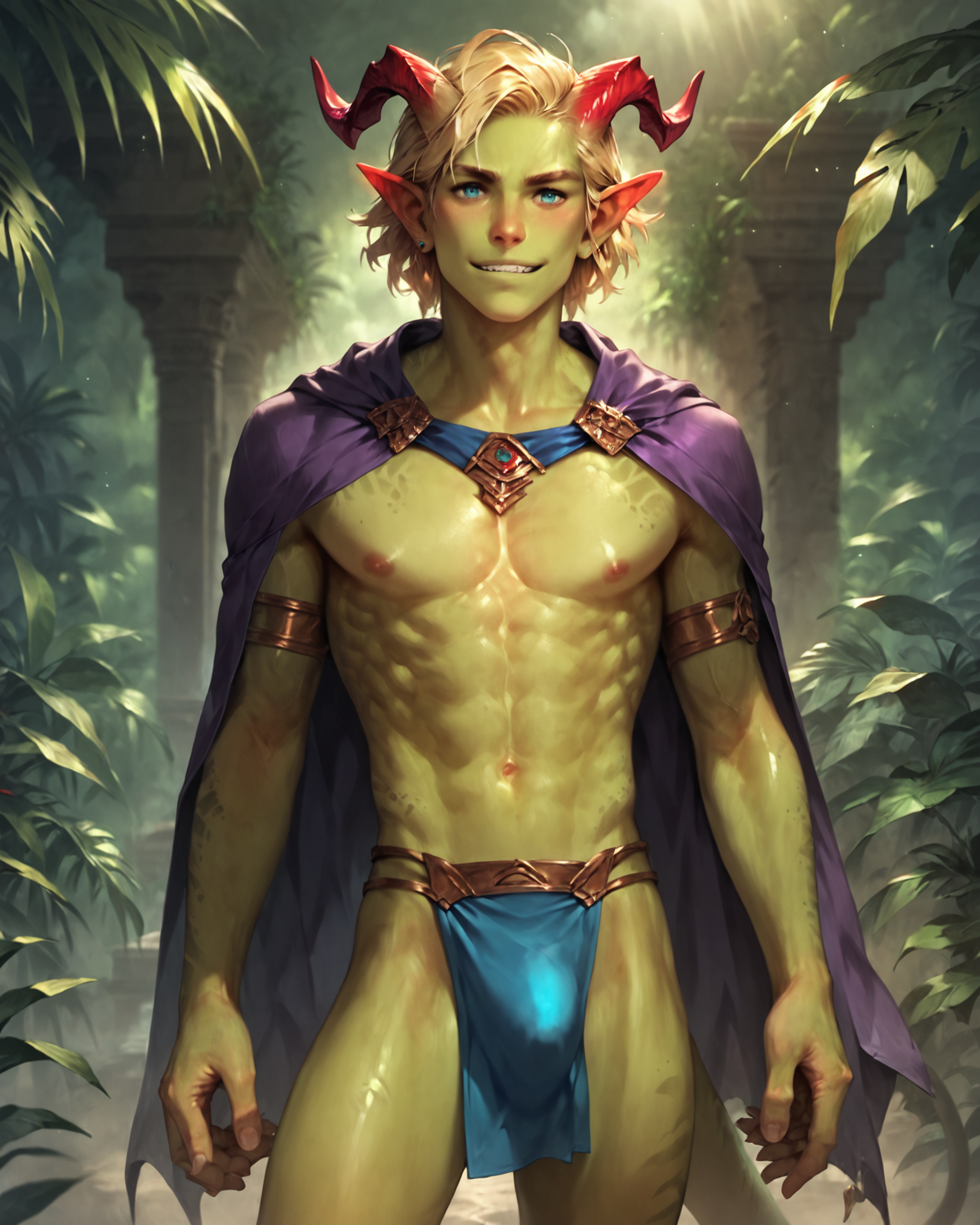 彼の色や細部を強調するための追加トリガー:緑色の肌、赤い角、尾
