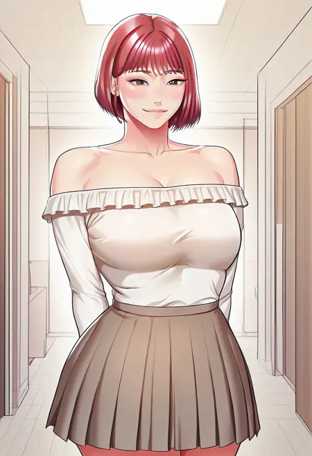 (( lora:jung_hye-yoon:1 , jung_hye-yoon, 纤细腰身,宽臀,美丽肌肤,锐利的浅棕色眼睛,清澈双眼,明亮瞳孔,美丽眼睛,美丽的红发,美丽的短发,刘海,巨大而蓬松的胸部,自然美,超美女性,迷人女性,超级性感女性,欲望之躯,具有诱惑性露骨身体的性感女性,性感身材,丰满身体,性感美,无穿孔,无任何穿孔))