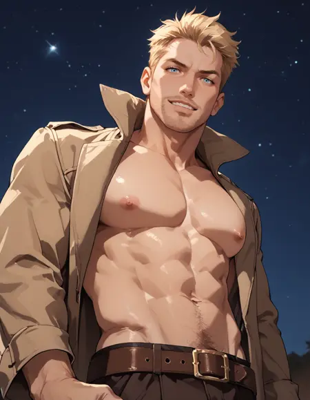 john_c, 1boy, blonde hair, light blue eyes, thick stubble