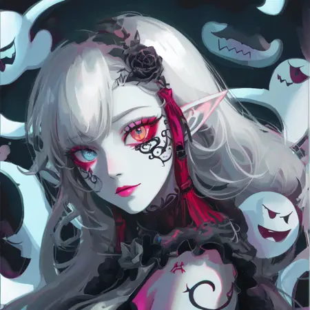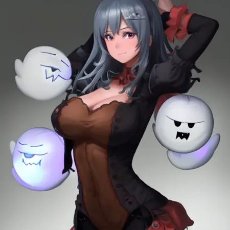 推荐提示词: ((multiple boo)) <-- 请不要添加 :1.1 这类数值,否则会破坏面部效果。负面提示词: 孩子, 年轻, 矮小, 可爱小人, 小萝莉,