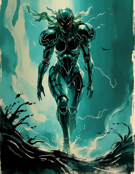 설정 및 더 긴 프롬프트는 갤러리를 참조하세요. 일반적으로 저는 "Highly detailed digital drawing by Yoji Shinkawa of..."와 같은 변형으로 시작한 후, 그의 기법과 관련된 용어를 추가로 덧붙여 더 세부적인 디테일을 추가합니다.